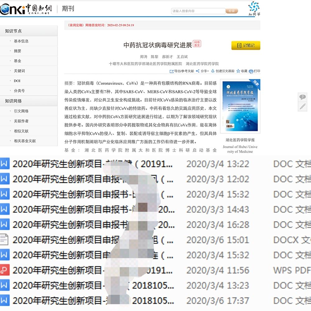 药学院常务副院长李飞博士在襄阳市襄城区挂职,积极投入到当地防控疫情一线,她不仅自己带头为防疫捐款八百元,还利用不多的休息时间远程指导研究生在家开展相关课题研究和论文撰写。药学院副院长郝新才博士,疫情发生后因为交通管制滞留老家,但仍然坚持查找第一手资料,与附属太和医院药学部陈黎主任、郑涛博士合作完成论文《中药抗冠状病毒研究进展》,希望让更多普通老百姓了解冠状病毒,知道如何运用中医药方法对付病毒。他还鼓励药学院研究生利用超长假期开展科学研究,有10名研究生在各自导师的指导下完成了2020年研究生创新项目的申报,真正做到停课不停研。