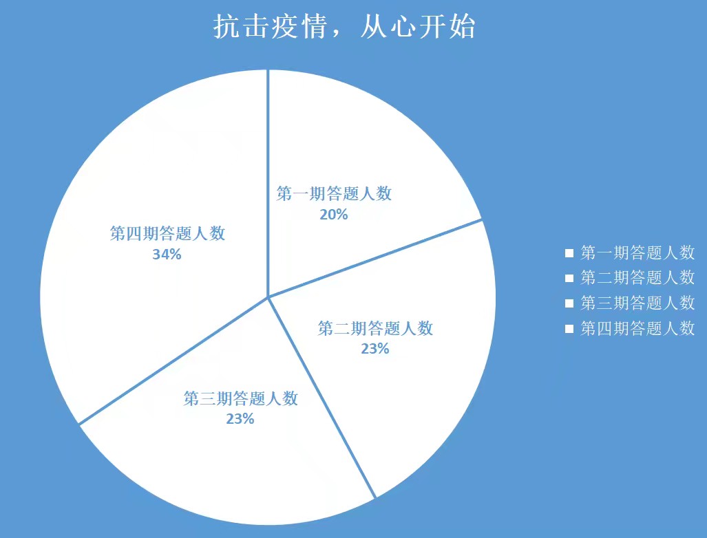 本次疫情心理小知识答题活动涵盖了新冠肺炎的科普知识、疫情中的心理问题调查、疫情下的心理压力、疫情后的心理问题应对以及缓解心理压力和处理不良情绪的方法,融知识性、教育性与实用性为一体,题型为单选题和多选题。为了让大家真正掌握疫情心理小知识,此次活动分为四期进行,每期答题满分100分,由系统统一评分。