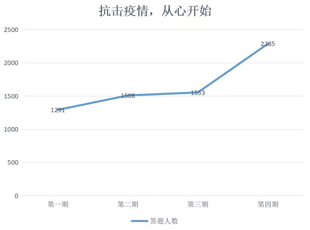本网讯(通讯员 严佳 刘寒梅)一场疫情,三个月的时间让每个同学在心理上进行了一次成长和洗礼。为进一步配合学校做好新冠肺炎疫情防控工作,引导全体学生了解有关疫情心理及调试方式,加强对自身心理健康的重视,2月15日至4月20日,由心理中心主办、朋辈心理咨询团承办的“抗击疫情,从心开始”线上答题活动顺利开展,全校累计2285名同学参与答题。