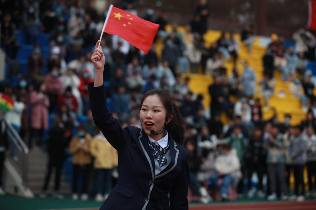 早上8:20,各学院学生统一服装,在田径场上集合完毕,等待升旗仪式的庄严举行。在运动会正式开始前,校啦啦操队、体育舞蹈队分别进行了健身操和体育舞蹈展示,中外学子共同合唱歌曲《旗开得胜》,现场气氛不断升温。