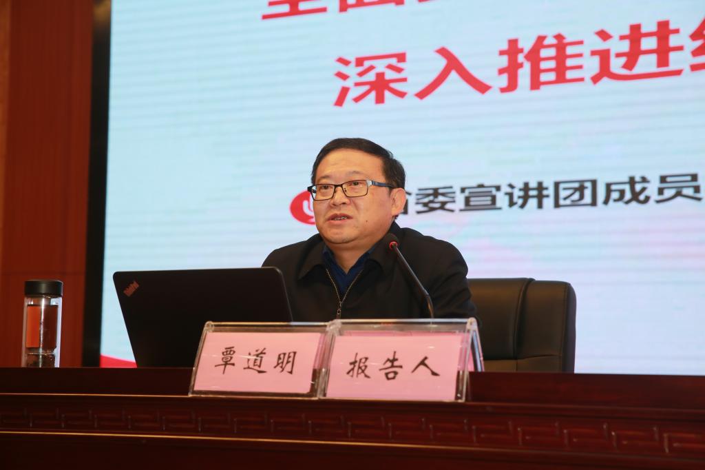 报告会上,覃道明结合湖北省情,从“决胜全面小康伟大成就彰显巨大制度优势,准确把握推进高质量发展的新方略,主动担当国家发展战略实施的湖北责任”等三方面,为我们做了一场精彩的宣讲报告。