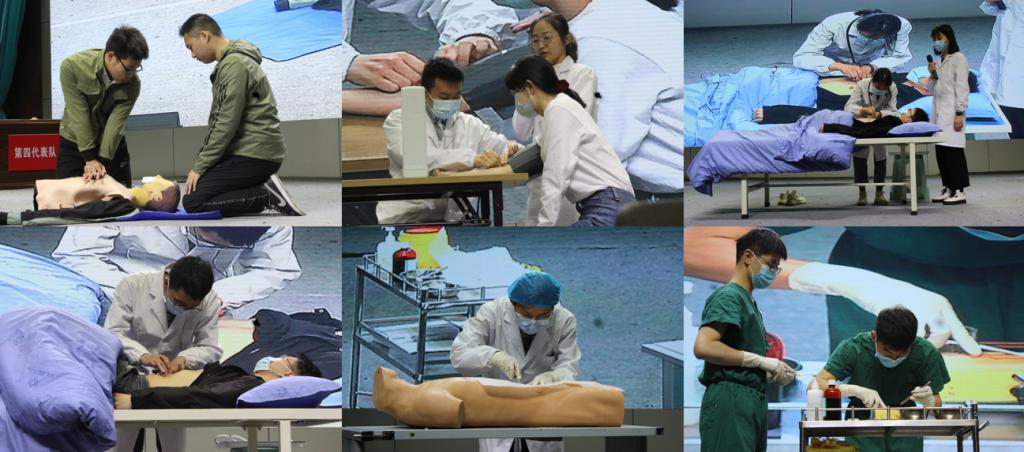 本次大赛分为初露锋芒、眼疾手快、心有灵犀、神医妙手四个环节,通过情景剧将技能操作串联起来,临床检查、疾病诊治的全过程充分展现。赛场上6支代表队扎实知识的比拼、默契团队的配合、卓越能力的展现,让整个比赛充满了紧张感和悬念,台上的操作精彩而有条不紊,台下的学生们认真观摩,受益匪浅。