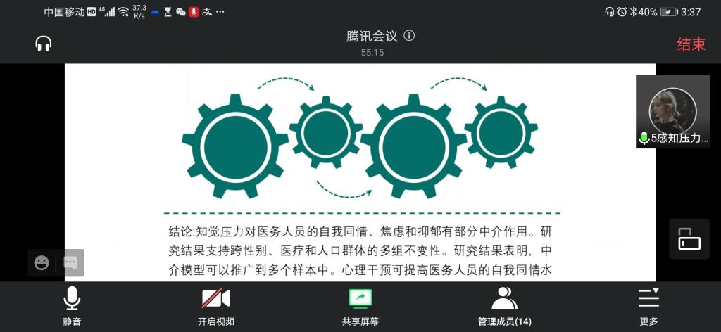 本次比赛,包括第二届(2019年度)、第三届(2020年度)创新节之“挑战杯”大学生课外学术科技作品竞赛校赛获得一、二、三等奖的作品和由于客观原因未参加以上两届赛事的作品,共计14个项目参加比赛。经过初赛和答辩,感知压力在自我同情与焦虑和抑郁之间的中介作用、正念的研究热点及演化路径的可视化分析、毛兰素通过火化JNK通路诱导乳腺癌细胞凋亡的实验研究等8个项目通过评审,获得推荐参加省赛的机会。