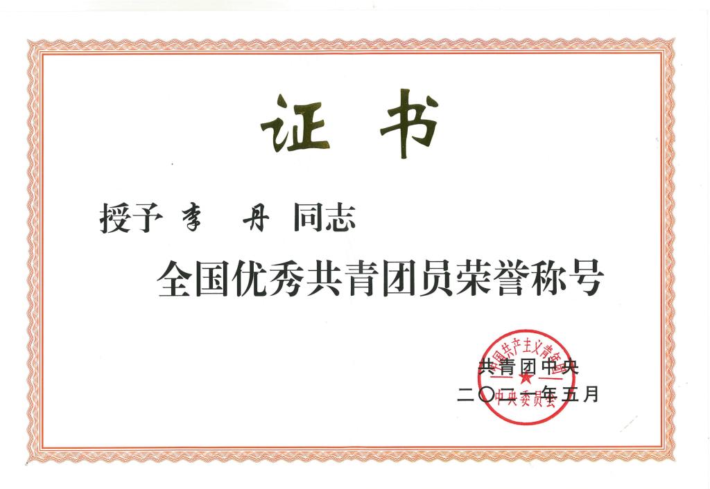 本网讯(通讯员 钟骅)五四青年节前夕,共青团中央公布全国五四红旗团委(团支部)、全国优秀共青团员、全国优秀共青团干部表彰名单。我校李丹同学荣获全国优秀共青团员称号。