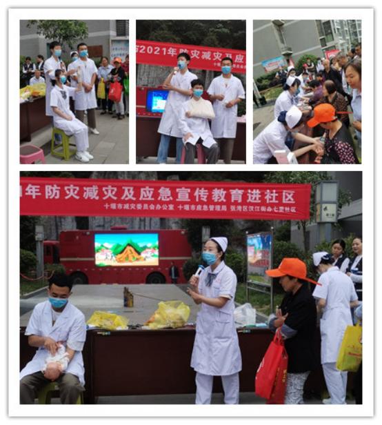 防灾减灾应急宣教活动。5月13日,护理学院技能教学培训中心教师带领红燕帽护理技能学习社和南丁格尔志愿服务队的8名同学前往张湾区七里社区开展志愿服务活动。活动主要围绕生活中创伤的止血、包扎方法以及海姆立克急救法等应急知识,通过知识宣讲、实操演练、现场互动的形式向社区居民展开宣传教育。在宣讲结束后,志愿者还为社区居民进行免费血压测量,并对居民提出的健康问题予以解答,根据居民的自身情况进行相关卫生健康知识普及。