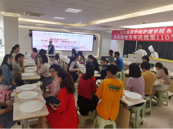 甜蜜护士节DIY水果蛋糕。往年的护士节,护理学院的老师们都是在忙碌护理技能大赛中度过,怎样让老师们好好放松一下,欢度一下自己的节日呢?5月11日下午四点半,护理学院携手汉口银行十堰上海路支行在八号楼三楼护理站举行喜迎建党百年庆祝第110个“5.12”国际护士节活动,教职工们听完银行工作人员的防范电信网络金融诈骗和普及金融理财知识的宣教后,开始制作蛋糕,准备好转盘、胚体、奶油、水果、果酱、一次性手套等物质,在蛋糕师傅的示范指导下,体验动手的乐趣,有模有样的制作属于自己的个性水果蛋糕,老师们自豪的捧着自己亲手制作的水果蛋糕和银行的工作人员欣然合影留念;老师们的朋友圈里瞬间被自己做蛋糕和家人吃自己做的蛋糕刷屏,以此纪念这个不一样的护士节。