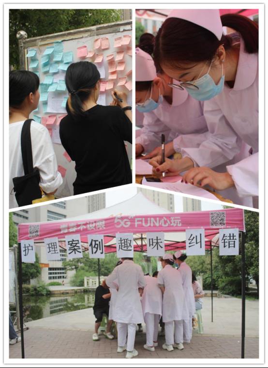 护理案例趣味纠错活动。5月12日下午,护理学院新媒体中心的学生干部们在8号楼前开展“夯实护理基础,展现护理特色”护理案例趣味纠错活动,以学生喜闻乐见的方式庆祝第110个“5.12国际护士节”活动。展板上贴满了写有错误护理案例的便利贴,只要找到其中的错误点,便可撕下贴纸,拿到帐篷下的工作人员处现场纠错。回答正确的同学可获得二课学分,回答错误的同学会被告知正确答案。活动持续了3个小时,有170余名护生参与了活动。