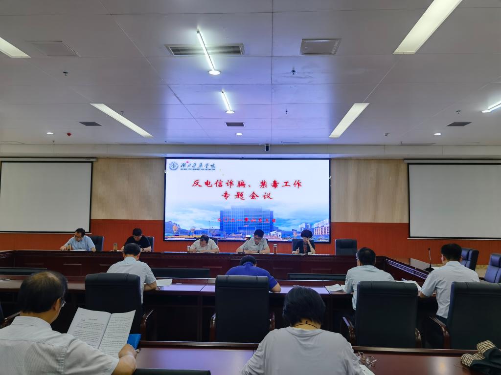 本网讯(通讯员 党雪峰)6月3日上午,举办高校湖北医药学院组织召开的反电信诈骗、禁毒工作专题会议在科教楼多功能厅召开。校领导涂汉军、李和、赵鹏飞、李云霞、王云甫、各职能部门负责人、各二级学院分党委书记、全体辅导员参加了会议,会议由党委副书记,校长李和主持。