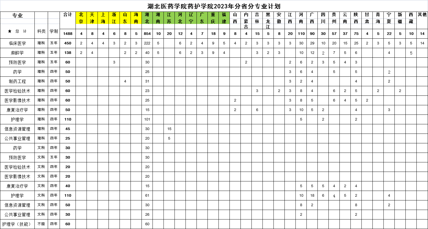 (本网讯 通讯员 郝若男)近日,湖北省教育厅给我院下达了2023年本科招生计划。今年,我院将面向全国31个省(市、自治区)招收本科生1488人,其中,省内854人、省外620人。计划类型包括普通本科计划,中西部协作计划,技能高考本科计划等。技能高考本科计划60人,面向省内招收参加技能高考的中职考生,招生专业为护理学。