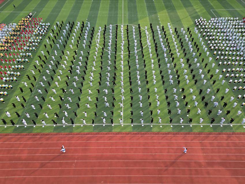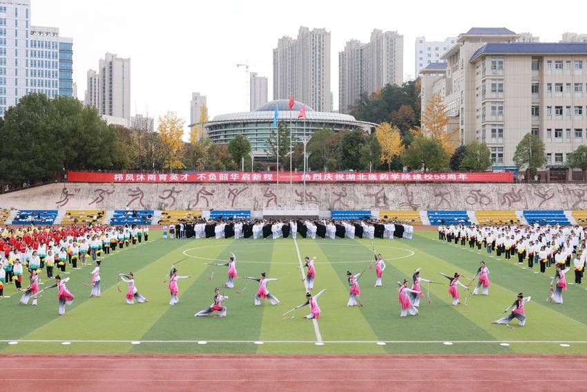 启动仪式上,表演方阵整装待发,随着时间推进变换着队形,给予观众强烈的视觉冲击。极具特色的《太极九式》《象王行》表演,其一招一式无不彰显着湖医药学子的青春活力。《剑韵梅香》中,表演者跟随音乐舞剑,刚柔并济、矫若游龙,展现极致的美感。《体育舞蹈》和《花球操》展现了学子的朝气蓬勃,飞扬的裙摆张扬着青春的魅力。最后登场的《你要跳舞吗》用极具现代风格的舞蹈,让全场气氛达到高潮。