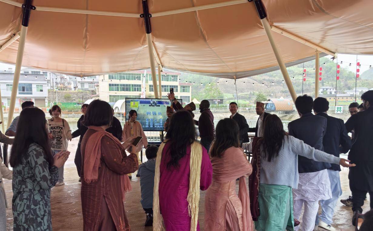 在“小田记忆”渔旅融合体,大家穿梭于滨河花溪景观带、水上部落度假区、乡情民俗体验区等区域观景体验。品茶之余,学生们还载歌载舞,演绎特色民族舞蹈、中外经典歌曲和中国传统武术。碧水青山、粉墙黛瓦、欢声笑语相得益彰,构成一幅生机勃勃的乡村画卷。