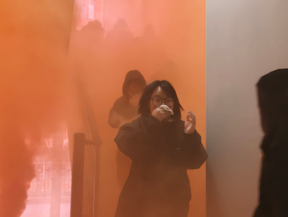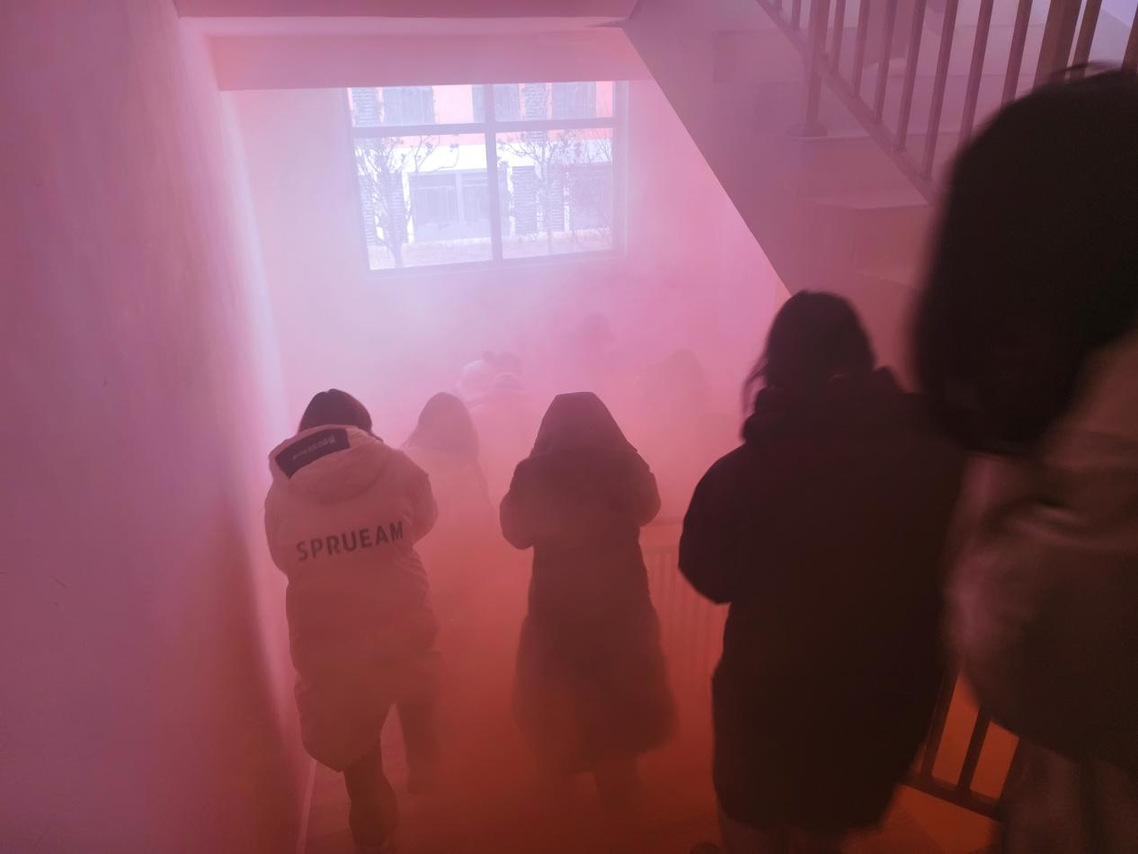 “呜——呜——”10点45分,逃生警报响起。宿舍楼内烟雾模拟装置启动,宿管人员、辅导员紧急引导,同学们迅速用湿毛巾捂住口鼻,弯腰低姿,沿着安全通道有序撤离。短短几十分钟,全体参与人员安全抵达指定集合点,整个过程紧张有序、规范高效。演练结束后,消防专家现场点评,指出不足并强调逃生注意事项。