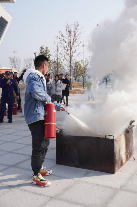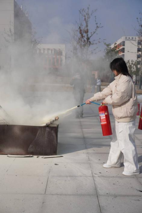 理论学习结束,实操演练紧跟上!消防队指导人员现场示范灭火器“提、拔、握、压”四步用法,动作标准规范,讲解清晰易懂。师生代表分组上阵,亲手操作灭火器扑灭模拟火源。从紧张生疏到熟练掌握,在指导人员的逐一纠正下,大家切实学会了初期火灾的扑救方法。