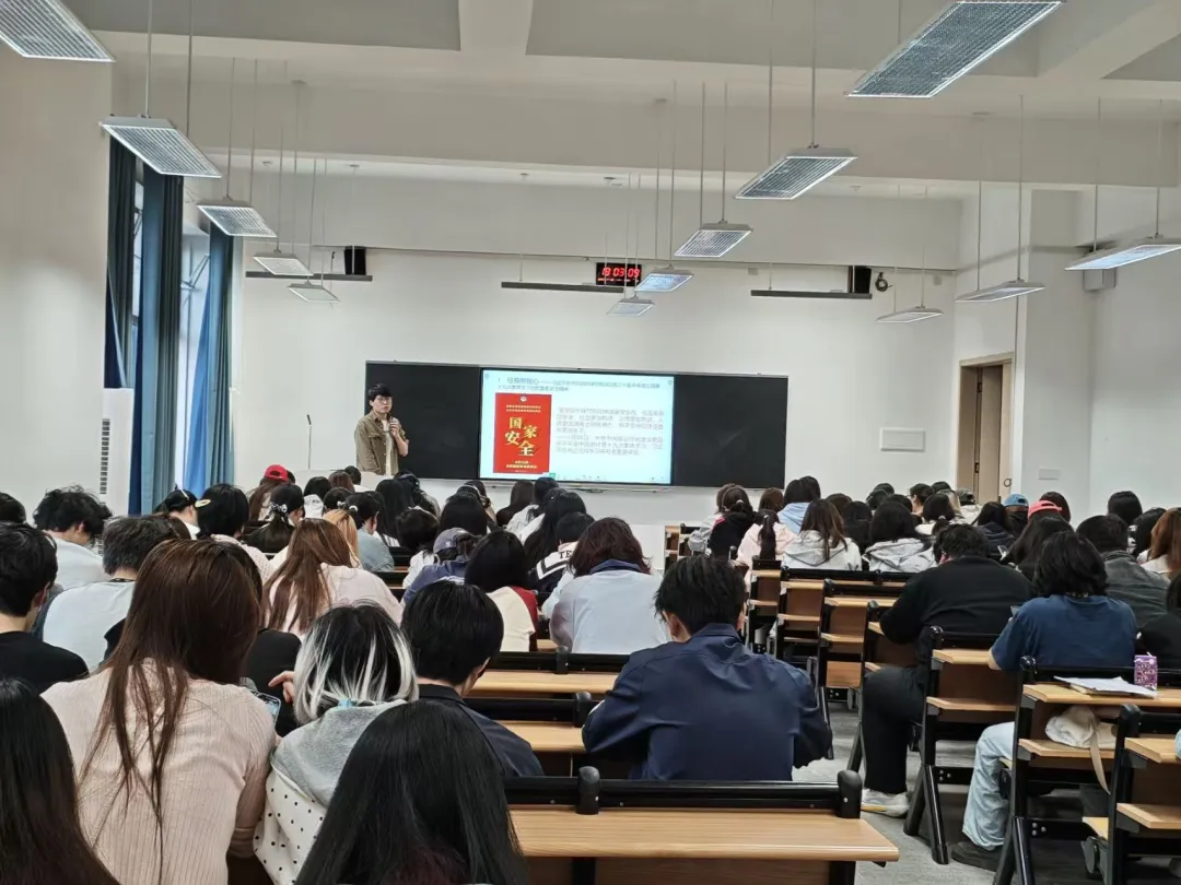 当天,学院组织无课班级学生在教室集中观看“千万师生同上一堂国家安全教育课”。该课程由教育部思想政治工作司指导,中国大学生在线汇集国家安全教育示范宣讲集萃视频,通过线上直播的形式,带领全国高校师生深入学习国家安全知识,感悟新时代国家安全成就。同学们在沉浸式课堂中深化对国家安全的认知,明确青年一代的责任与使命,将安全理念内化于心、外化于行,争做国家安全的学习者、传播者。